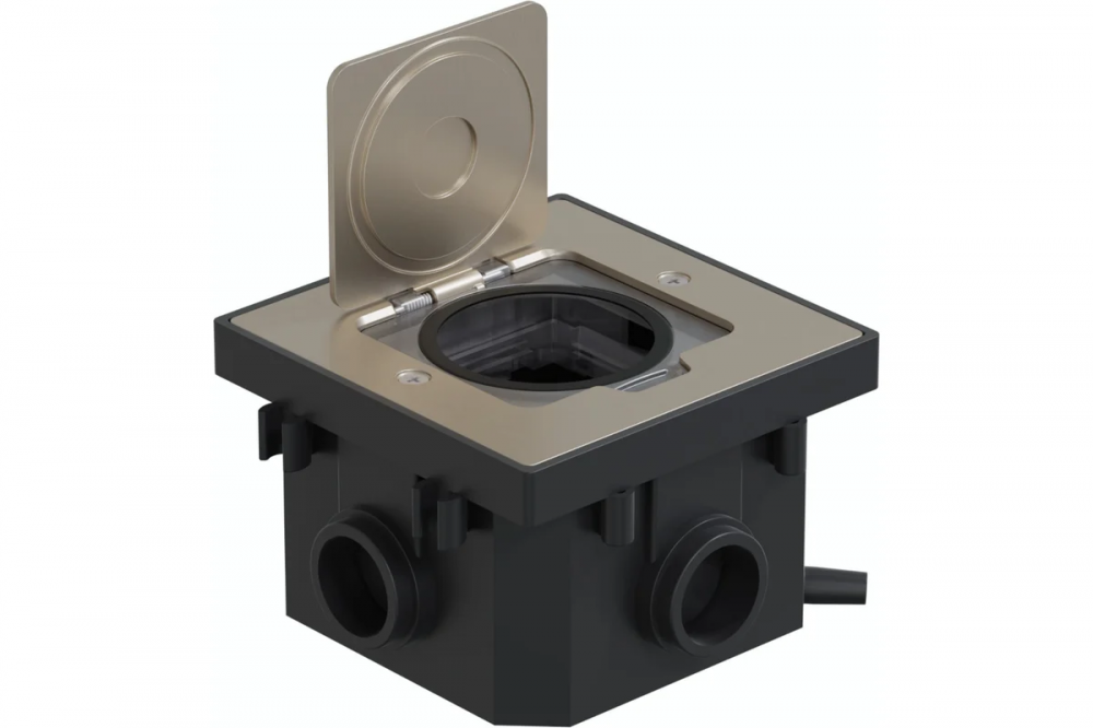 Люк в пол на 1 пост* предназначен для организации рабочих мест преимущественно в офисах открытого типа (open space). Лючок отличается компактным размером: 90х59х90 мм, предназначен для установки в бетонные полы под заливку. Плоская металлическая крышка гарантирует высокую ударопрочность и устойчивость к интенсивным механическим нагрузкам. Механизм скрытых петель крышки обеспечивает установку люка в уровень с полом. Для организации нескольких рабочих мест люки могут быть объединены в блочные конструкции.