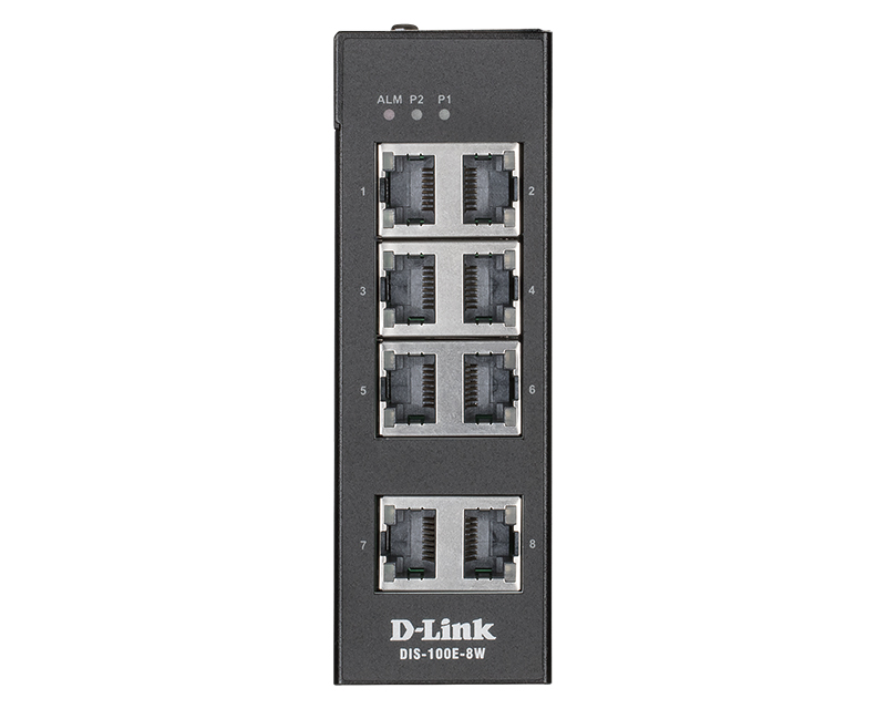 Неуправляемый коммутатор DIS-100E-8W, оснащенный 8 портами 10/100Base-TX, предназначен для применения в сетях промышленных предприятий. Коммутатор поддерживает технологию Plug-and-play, позволяющую подключать к нему устройства без произведения дополнительных настроек.