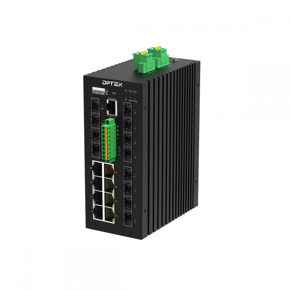 Индустриальные коммутаторы L2+ от вендора dptek - это надежные и высокотехнологичные устройства, которые специально разработаны для работы в сложных условиях. Они обеспечивают высокую производительность, стабильность и безопасность сети в промышленных средах, таких как заводы, шахты, нефтегазовые платформы и т.д. Они сочетают в себе функции L2-коммутаторов, такие как пересылка данных по MAC-адресам, с дополнительными функциями L3-коммутаторов, такими как поддержка VLAN, статическая маршрутизация, ARP. Это позволяет создавать гибкие и эффективные сетевые решения, которые подходят для различного применения.