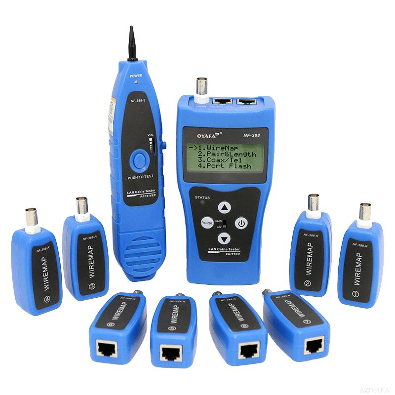 - Выявление неисправностей - Отслеживание и выявление обрыва линии, коротких замыканий, перемычек проводов, обратного соединения кабелей или перекрестных помех у кабелей 5E, 6E, подводных кабелей, коаксиальных кабелей и телефонных линий.