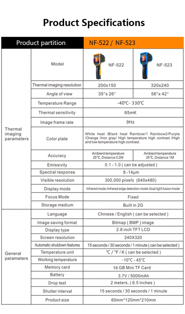 | Разрешение тепловизора | 320x240 | |