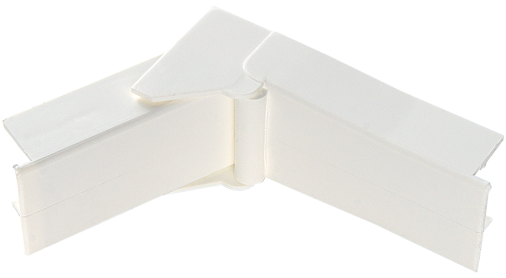 Угол внутренний/внешний универсальный изменяемый (60-120°) предназначен для соединения кабельных каналов 20х12,5 под внутренним/внешним углах, а также декоративного оформления мест стыковки.