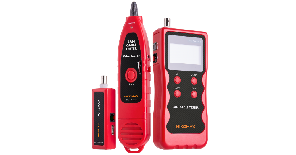Кабельный тестер NIKOMAX NMC-TED400TR с LCD дисплеем предназначен для работы с широким спектром кабелей. Это UTP/STP кабели витая пара, оконцованные разъемами RJ45, коаксиальные кабели с BNC разъёмами, телефонные кабели RJ11/RJ12, USB кабели (type A - type B).
