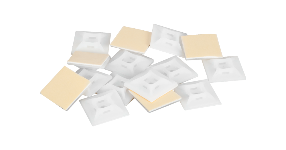 В местах, где необходимо прикрепить одиночный кабель или небольшой кабельный пучок к какой-либо поверхности, самым простым и удобным решением является использование стяжек и самоклеющихся площадок. Площадки NIKOMAX имеют липкий слой с высоким уровнем адгезии и два отверстия под винты для дополнительного закрепления при необходимости. Основания поставляются двух размеров: 20х20 мм, с проушинами под стяжки шириной до 4,5 мм и 28х28 мм с проушинами 5 мм.