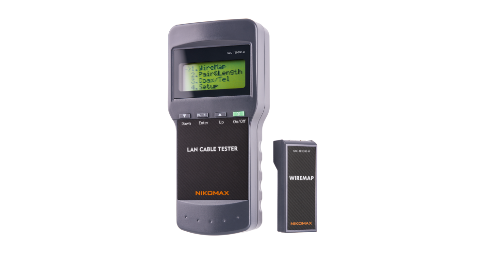 Кабельный тестер NIKOMAX NMC-TED300 с LCD дисплеем предназначен для работы с кабелями витая пара, оконцованными разъемами RJ45.Тестер способен диагностировать такие ошибки в линии как нарушение схемы разводки проводников, обрыв проводников и короткие замыкания, а так же способен измерить длину кабельной линии. Тестер имеет несколько ячеек хранения параметров калибровки для работы с кабелями разных производителей и категорий.