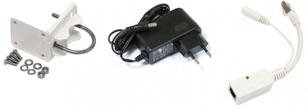 - Комплект поставки включает два сопряжённых устройства LHG 60G, два адаптера питания, два гигабитных PoE-инжектора и пару наборов для юстировки.