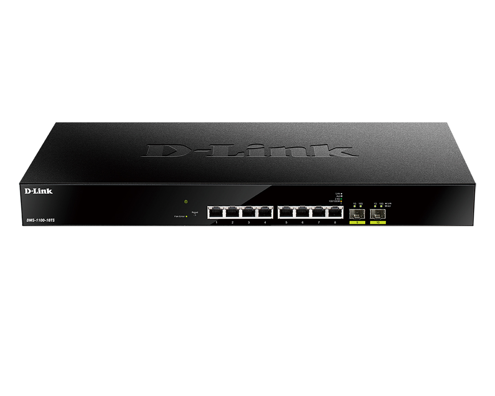 Настраиваемый коммутатор DMS-1100-10TS оснащен 8 портами 2.5GBase-T для подключения по витой паре, а также 2 портами 10GBase-X SFP+, применяемыми для организации подключения к высокоскоростной магистрали. Благодаря поддержке технологии 2.5 Gigabit Ethernet данный коммутатор является идеальным решением для работы с беспроводными точками доступа 802.11ac Wave 2, а 10-гигабитные uplink-порты SFP+ обеспечивают соединение с высокой пропускной способностью при организации более крупной локальной сети.