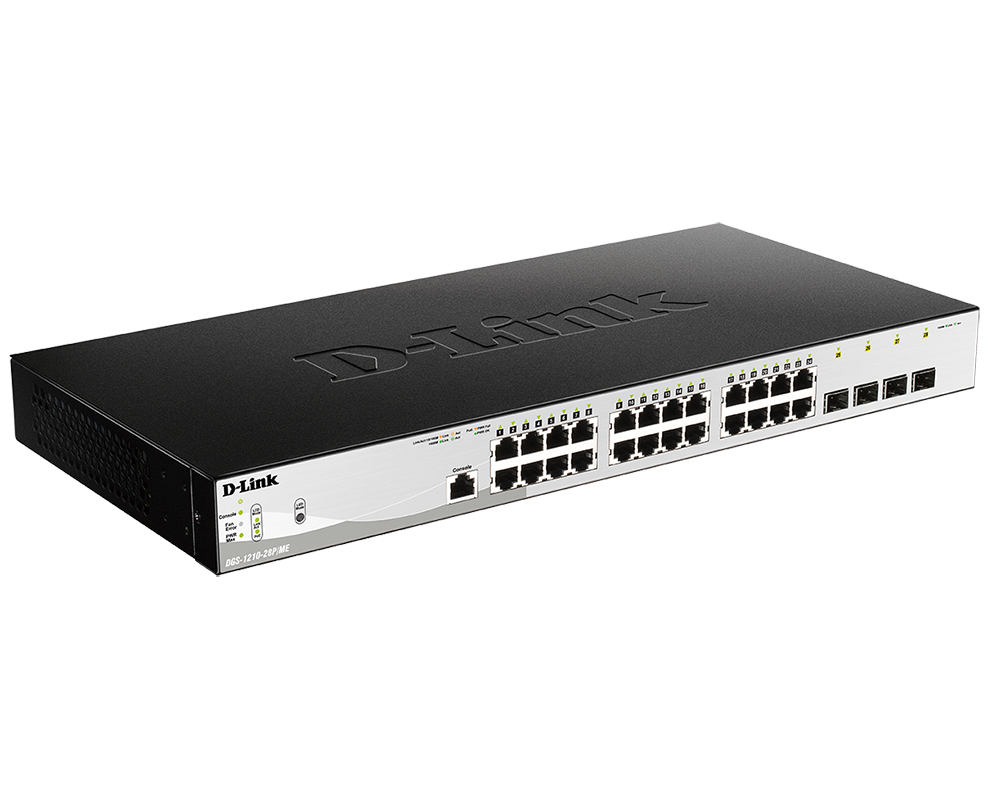 Коммутатор DGS-1210-28P/ME является идеальным решением для применения в сетях Metro Ethernet. Данный коммутатор оснащен 24 портами 10/100/1000Base-T с поддержкой PoE для подключения по витой паре, а также 4 SFP-портами, применяемыми для организации подключения к высокоскоростной магистрали. Защита от статического электричества 6 кВ обеспечивает устойчивость медных портов к наведенному напряжению, а полный набор функций безопасности и аутентификации защищает сеть от внутренних и внешних угроз.