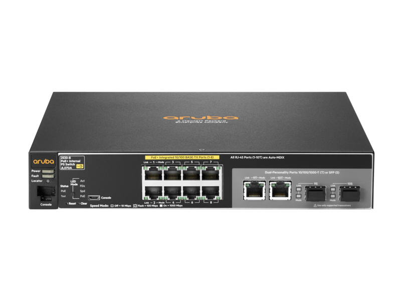 Подробное описание продукта Коммутатор Aruba 2530 с 8 разъемами с поддержкой PoE+, 2 разъемами двойного назначения и внутренним блоком питания