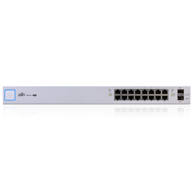 Высокопроизводительный управляемый коммутатор Ubiquiti Networks из серии оборудования UniFi®, имеющий 16 Ethernet-портов 1 Гбит с поддержкой питания подключённых устройств PoE out стандартов 802.3af/at (PoE+) и Passive PoE 24 В (макс. выходная мощность на порт, соответственно = 34.2 Вт и 17 Вт) и функциями автоопределения, 2 порта SFP (1.25 Гбит) для оптических соединений, а также консольный последовательный RJ-45 порт для управления. Максимальная мощность и PoE-бюджет = 150 Вт. Производительность более 26 Гбит/с неблокируемой пропускной способности.