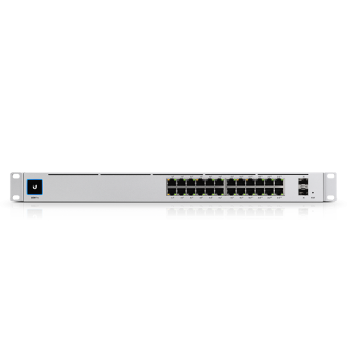 Высокопроизводительный управляемый Layer 3* коммутатор Ubiquiti Networks из серии оборудования UniFi® 2-го поколения, имеющий 24 Ethernet-порта 1 Гбит с функциями автоопределения и поддержкой питания подключённых устройств PoE out стандартов 802.3af/at (PoE+) на портах 1—16 и 802.3bt (PoE++) на портах 17—24, а также 2 порта SFP+ (10 Гбит/c) для оптических соединений. Коммутатор оснащён информативным сенсорным LCD-дисплеем 1.3", который позволяет отображать информацию о статусе системы, возможных проблемах, статистику по портам, данные PoE и ряд других полезных данных. Данные, отображаемые в дисплее могут быть синхронизированы для нескольких коммутаторов. Коммутаторы Ubiquiti UniFi 2-го поколения полностью поддерживают систему бесперебойного питания The UniFi SmartPower Redundant Power System. В случае отказа стандартного питания, каждое устройство UniFi SmartPower может обеспечить отказоустойчивое питание до 6 коммутаторов.