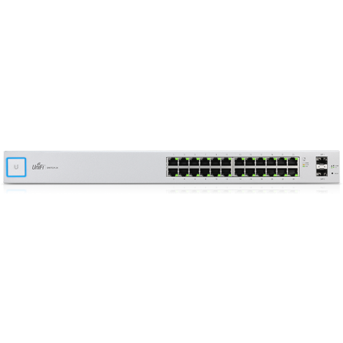 Управляемый 24-портовый гигабитный коммутатор с производительностью более 26 Гб/с. Устройство имеет 24 порта Ethernet 10/100/1000, два SFP 1 Gbps порта для подключения к оптоволоконным сетям и дополнительный RJ-45 последовательный порт управления (Console). Ubiquiti UniFi Switch US-24 выполнен в надежном металлическом корпусе. Для управления устройством требуется наличие в сети программного контроллера Unifi Controller или аппаратного контроллера UniFi Cloud Key.