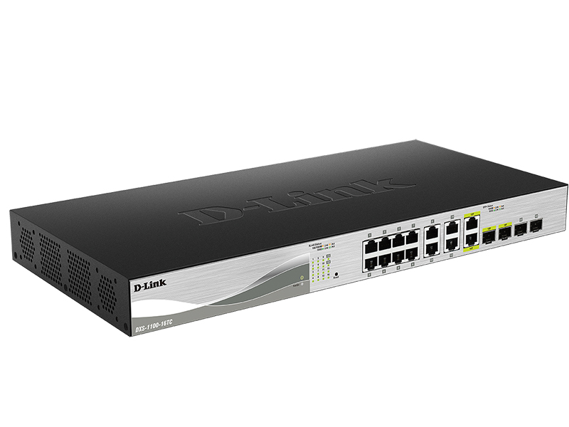 Настраиваемый коммутатор серии EasySmart DXS-1100-16TC, оснащенный 12 портами 10GBase-T, 2 портами 10GBase-X SFP+ и 2 комбо-портами 10GBase-T/SFP+, осуществляет коммутацию трафика на скорости до 10 Гбит/с и предназначен для использования в сетях предприятий малого и среднего бизнеса. Коммутатор может применяться в качестве устройства агрегирования и является экономически выгодным и многофункциональным решением для организации сетей 10 Gigabit Ethernet.