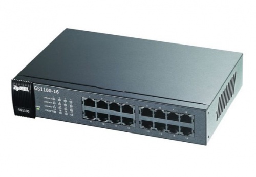 Модель GS1100-16 имеет 16 гигабитных медных портов. Удобное включение и отключение коммутатора посредством выключателя на задней панели. Компактный металлический корпус со встроенным адаптером питания.