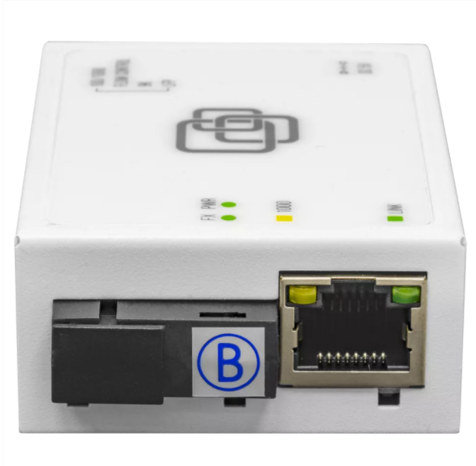 Медиаконвертер SNR-CVT-1000B преобразует сигнал из стандарта 10/100/1000-Base-T в сигнал 100/1000Base-FX, оснащен встроенным приемо-передатчиком и передает данные на длине волны 1550нм, а принимает на 1310нм, работает на расстоянии до 20км.