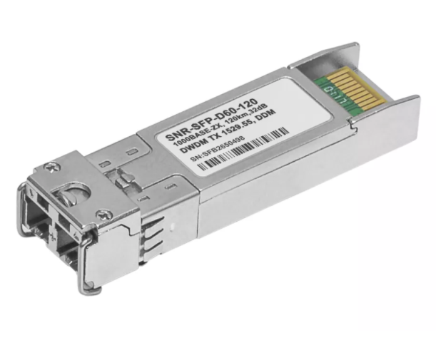 Двухволоконный оптический DWDM модуль с форм-фактором SFP для 1G Ethernet, соответствует стандарту 1000Base-ZX. Предназначен для работы в одномодовом оптическом волокне (Single mode fiber, SMF), максимальная дальность 120км, оптический бюджет 32dB, duplex LC коннектор, соответствие рекомендациям SFF-8431 Multisource Agreement (MSA).