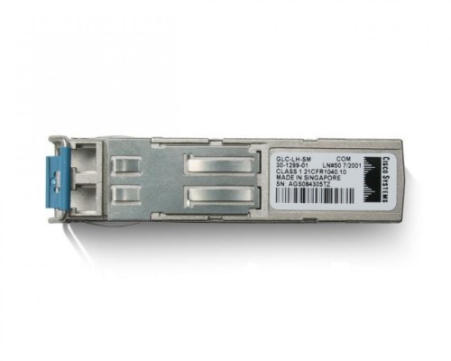 Длинноволновой модуль Cisco GLC-LH-SM работает в условия расширенного температурного режима от -5 до 85 °C, что качественно выделяет его среди модулей, рассчитанных на работу только в условиях коммерческого температурного диапазона (0 до 70 °C). Данная модель оснащена поддержкой функции цифрового контроля Digital Optical Monitoring, которая благодаря ряду датчиков, передают информацию о напряжении, температуре, уровне сигнала и других ключевых параметров работы устройства в реальном времени. Модель имеет малый форм-фактор SFP стандарта 1000BASE-LX/LH, и подключается через двойной разъем типа LC. Стоит отметить, что тип волокна подходит, как SMF, так и MMF. Максимальная длина кабеля для обеспечения качественной и надежной связи не должна превышать 10 км, а длина волны для передачи должна составлять 1310 Нм. Такой модуль передает данные на длине волны 1270-1340 Нм и принимает сигнал на длине волны 1100-1600 Нм. Скорость передачи данных составляет от 100 до 1250 Мбит в секунду. Благодаря поддержке горячей замены, пользователь может устанавливать модуль Cisco GLC-LH-SM по мере необходимости. Стоит отметить также и наличие прочной конструкции, что увеличивает срок эксплуатации.