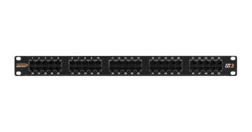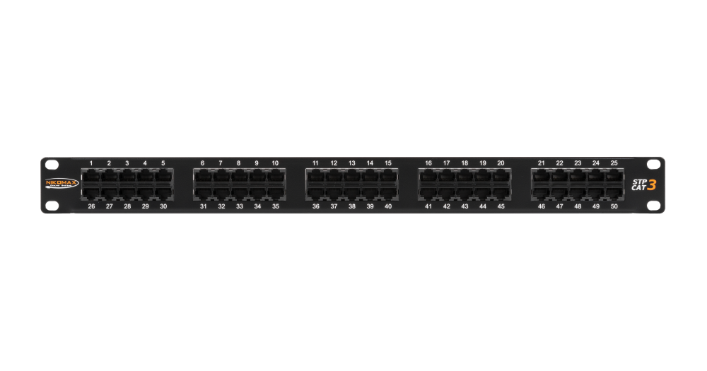 Коммутационные панели (патч-панели) предназначены для монтажа кабелей в различных подсистемах СКС и подключения отдельных составляющих сети друг к другу при помощи коммутационных шнуров. Телефонная патч-панель NIKOMAX NMC-RP50UC3-1U-BK предназначена для монтажа в 19” шкаф или стойку. При стандартной высоте в 1U, панель вмещает 50 портов RJ45/8P6C категории 3, что позволяет значительно сэкономить пространство внутри шкафа. В отличие от большинства телефонных панелей, NMC-RP50UC3-1U-BK поддерживает работу по трем парам, что бывает необходимо для работы некоторых видов цифровых АТС. Для удобства администрирования все порты пронумерованы, а также имеются дополнительные площадки для маркировки. Патч-панель выполнена в классическом черном цвете. Универсальные IDC контакты 110/KRONE расположены с тыльной стороны панели, на горизонтальной подложке. Такая конструкция позволяет гораздо удобнее разводить многопарные кабели. Заделка патч-панели производится по стандарту USOC. Для закрепления кабелей предусмотрен встроенный органайзер.
