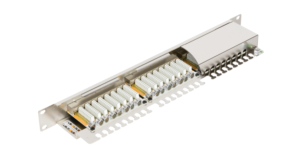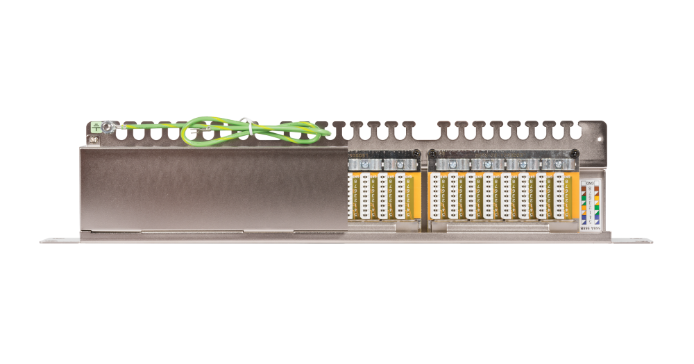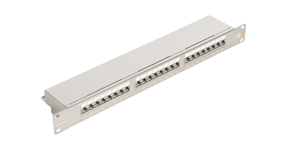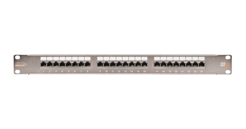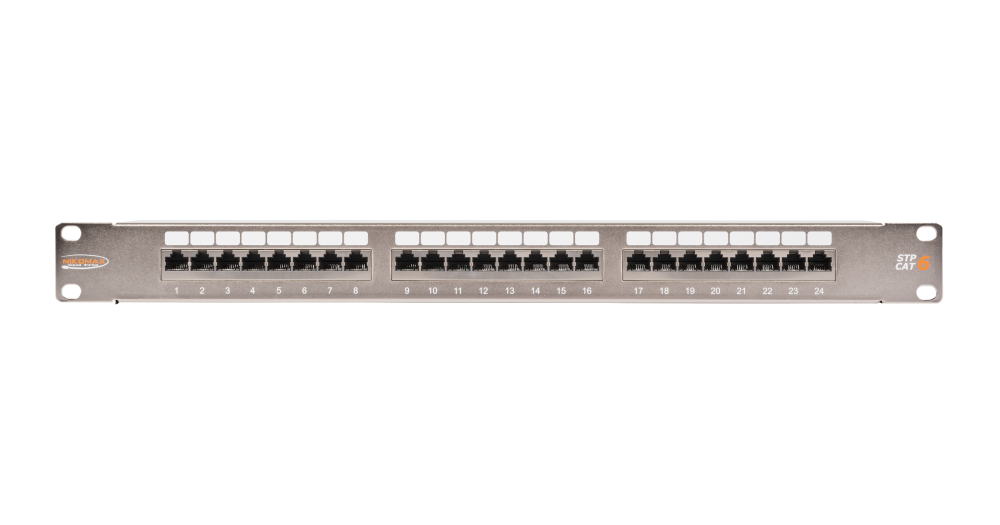 Коммутационные панели (патч-панели) предназначены для монтажа кабелей в различных подсистемах СКС и подключения отдельных составляющих сети друг к другу при помощи коммутационных шнуров. Патч-панели NIKOMAX NMC-RP24SE2-1U-MT (кат.6) выполнены в стальных, полностью экранированных корпусах и предназначены для монтажа в 19” шкафы или стойки. Панели имеют стандартную высоту в 1U и вмещают по 24 порта RJ45/8P8C. Универсальные IDC контакты 110/KRONE расположены с тыльной стороны панелей, на горизонтальной подложке. Разводка кабелей на патч-панелях производится по двум стандартам: T568 А и B. Экраны кабелей попарно заземляются на винтовые клеммы. Предусмотрен 9-й заземляющий IDC-контакт – специально под дренажный проводник кабеля. С обеих сторон печатных плат имеются общие шины заземления. Для лучшего экранирования от электромагнитных помех и улучшения связи с неокрашенными направляющими шкафа, стальные корпуса панелей гальванизированы никелем. Предусмотрен встроенный органайзер для надежного закрепления кабелей.