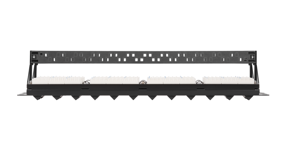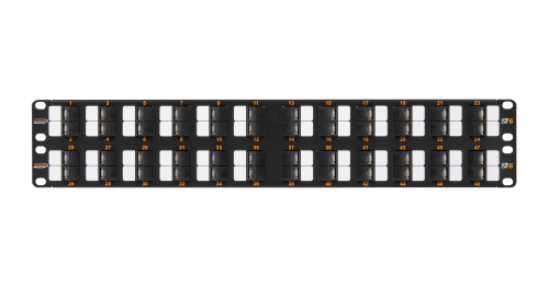 Коммутационные панели (патч-панели) предназначены для разделки в них кабелей различных подсистем СКС и подключения отдельных составляющих сети друг к другу коммутационными шнурами. Особенностью панелей серии «AN» являются угловые порты, которые позволяют удобно разносить коммутационные шнуры в стороны, и закреплять их на вертикальных кабельных органайзерах. Такое решение позволяет обходиться без стандартных кабельных органайзеров и экономить ценное место в шкафу. Патч-панели NMC-RP24UE2-AN-1U-BK вмещают по 24 порта RJ45/8P8C при высоте 1U. Панели выполнены в черном цвете и предназначены для монтажа в 19 шкаф или стойку. С тыльной стороны панелей размещены контакты 110 типа с цветовой маркировкой по стандарту Т568А/В. Для удобства администрирования все порты пронумерованы, имеются дополнительные маркировочные площадки. В комплекты патч-панелей входят удобные съемные органайзеры для разводки входящих кабелей.