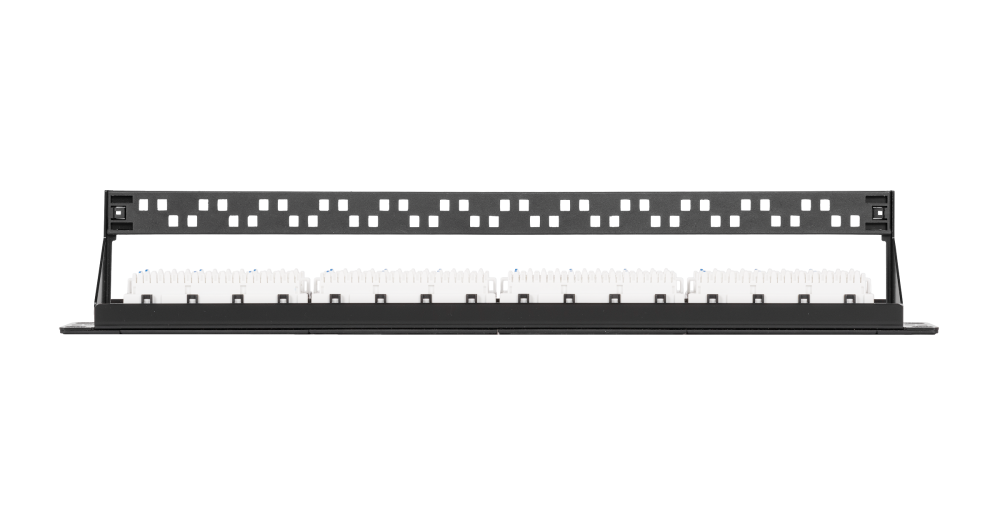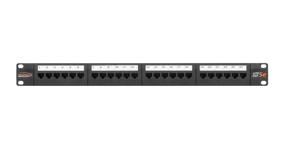 Коммутационные панели (патч-панели) предназначены для монтажа кабелей в различных подсистемах СКС и подключения отдельных составляющих сети друг к другу при помощи коммутационных шнуров. Неэкранированные патч-панели NIKOMAX выполнены в черном цвете и предназначены для монтажа в 19” шкаф или стойку. Панели NMC-RP24UD2-1U-BK (кат.5е) имеют стандартную высоту в 1U и вмещает 24 порта RJ45/8P8C. С тыльной стороны патч-панелей размещены контакты 110 типа с цветной маркировкой по двум стандартам: T568 А и B. Особый дизайн контактов также позволяет использовать для заделки кабелей ножи типа KRONE. Для удобства администрирования все порты пронумерованы, а также имеются дополнительные площадки для маркировки. В комплекты патч-панелей входят удобные съемные органайзеры для разводки входящих кабелей.