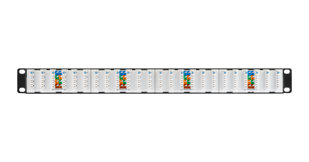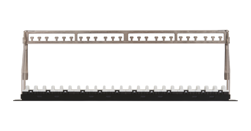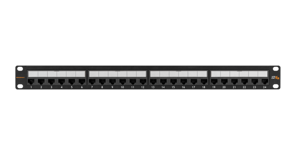 Коммутационные панели (патч-панели) предназначены для монтажа кабелей в различных подсистемах СКС и подключения отдельных составляющих сети друг к другу при помощи коммутационных шнуров. Неэкранированные патч-панели NIKOMAX выполнены в черном цвете и предназначены для монтажа в 19” шкаф или стойку. Панели NMC-RP24UA2-1U-BK (кат.6a) имеют стандартную высоту в 1U и вмещает 24 порта RJ45/8P8C. С тыльной стороны патч-панелей размещены контакты 110 типа с цветной маркировкой по двум стандартам: T568 А и B. Особый дизайн контактов также позволяет использовать для заделки кабелей ножи типа KRONE. Для удобства администрирования все порты пронумерованы, а также имеются дополнительные площадки для маркировки. В комплекты патч-панелей входят удобные съемные органайзеры для разводки входящих кабелей.