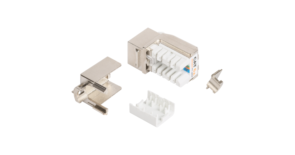 Модуль NMC-KJSA2-FT-MT (кат.6A), выполнен в литом, полностью экранированном корпусе из цинк-алюминиевого сплава. Экран кабеля заземляется на хвостовик на верхней крышке модуля и снизу дополнительно прижимается клипсой, обеспечивающей полный электрический контакт с корпусом. Конструкция закрепляется при помощи нейлоновой стяжки. На хвостовике также имеется крепление для заземляющего провода.