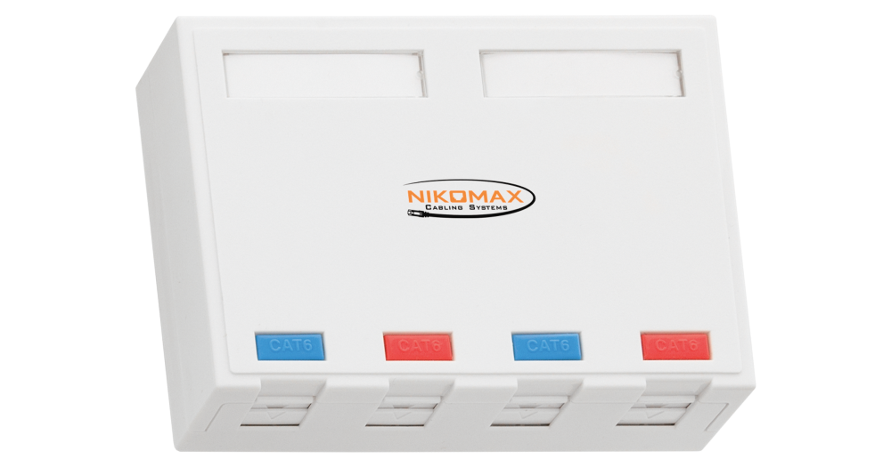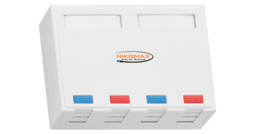 Коммутационные розетки являются составной частью горизонтальных подсистем СКС и предназначены для подключения оконечного оборудования на рабочих местах. Конструктивно розетки могут быть выполнены в двух вариантах: в виде законченного решения с впаянными в печатную плату портами RJ45 и IDC разъемами и в виде пластикового корпуса, в который отдельно устанавливаются коммутационные модули-вставки формата Keystone. Преимущество простых, пустых корпусов состоит в том, что туда могут быть установлены не только модули RJ45, но и любые другие, совместимые с форматом Keystone, в т.ч. телефонные, оптические и коаксиальные, в любой требуемой конфигурации. Корпуса розеток для настенного монтажа NIKOMAX – простое и удобное решение для монтажа сетей. NMC-MB4P-ST-WT - модели на 4 портов. Каждый порт данных розеток снабжен индивидуальной шторкой, защищающей контакты от оседания пыли. На корпусах предусмотрены дополнительные выламывающиеся окошки, позволяющие подвести кабели с любой стороны. Для удобства администрирования на всех крышках имеются площадки для маркировки и для установки цветных иконок.