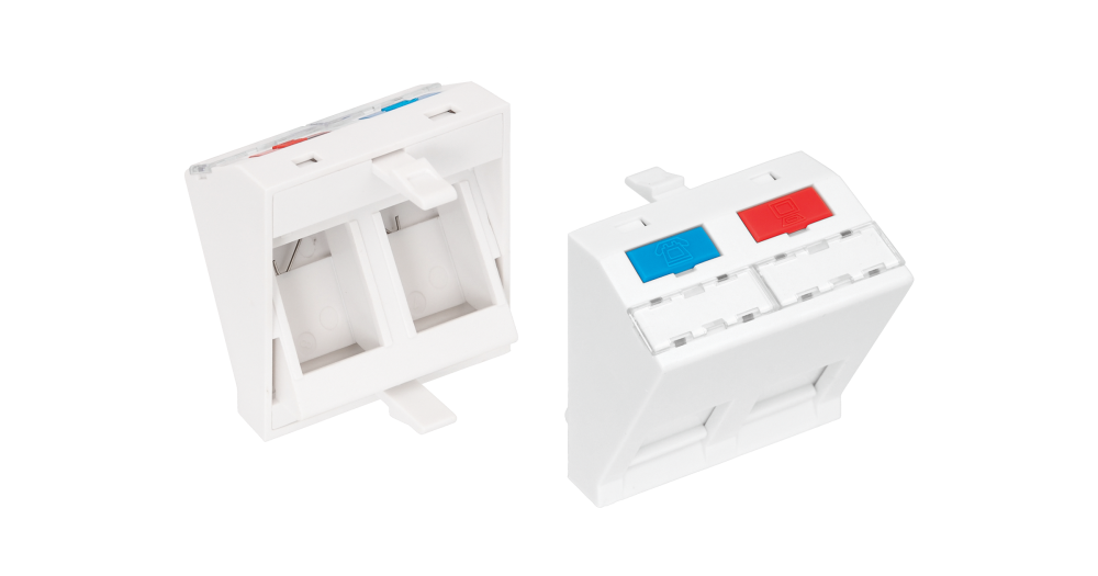 Для организации информационных портов на рабочем месте при помощи коробов, колонн и внутренних розеток применяется широкий спектр вставок французского стандарта Mosaic 22,5х45 мм и 45х45 мм. Вставки фиксируются в лицевых панелях при помощи удобных защелок и при необходимости легко демонтируются.