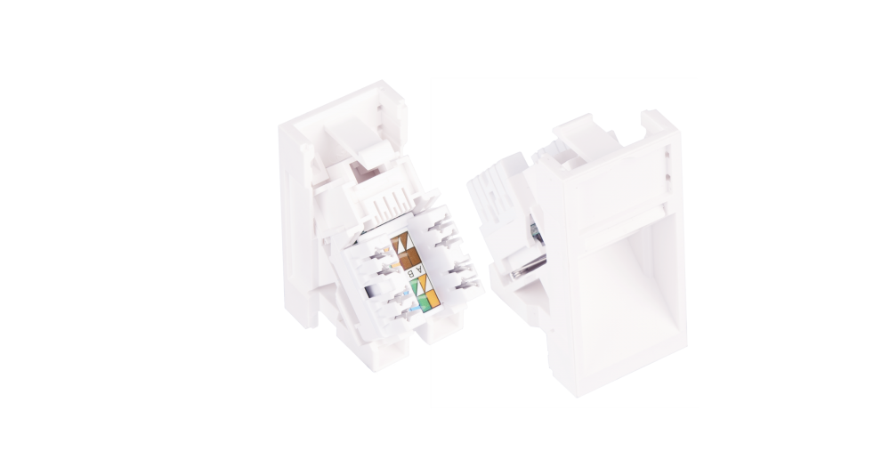 Вставки NMC-PM1UD2-AH-WW снабжены встроенным модулем, а так же шторкой для защиты гнезда от попадания пыли при отключенном коммутационном шнуре. Кроме этого имеются дополнительные площадки для маркировки, закрытые съемными прозрачными крышками.
