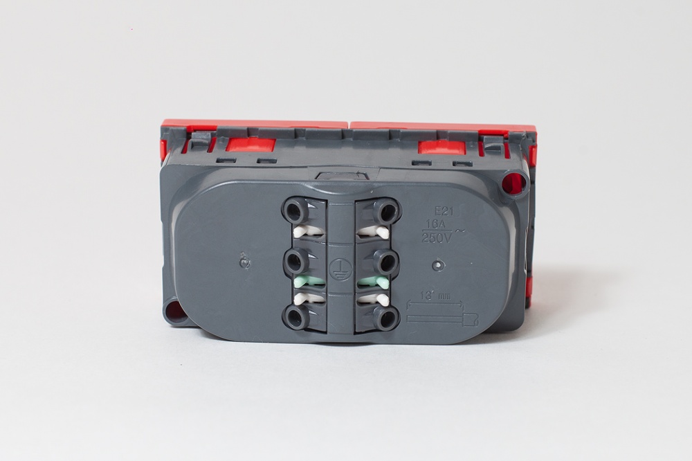 Электрическая розетка 2x2К+З со шторками, с безвинтовым зажимом, под углом 45 гр.. Предназначена для подключения к электросети различных бытовых приборов.