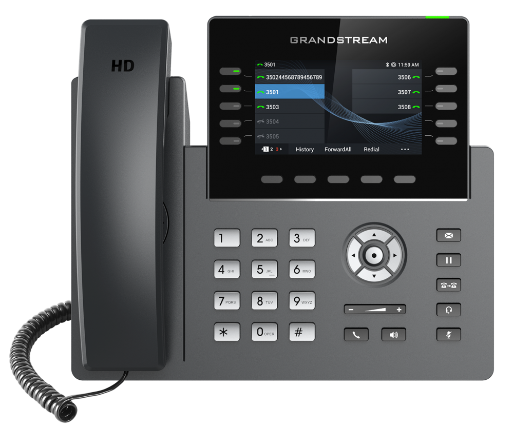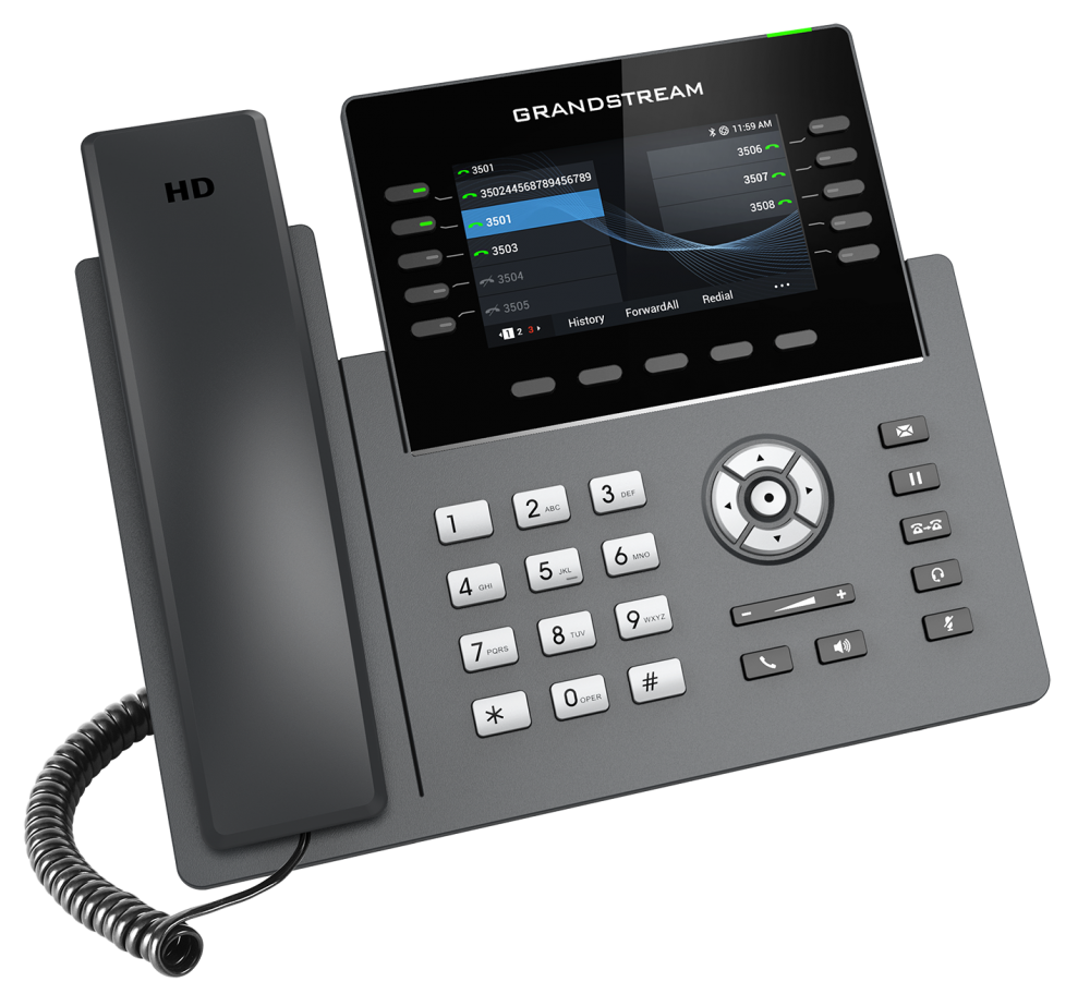 GRP2615 - высококлассный IP-телефон операторского класса, отличающийся элегантным дизайном и набором функций нового поколения, включая интегрированный Wi-Fi, поддержку Bluetooth, 40 многофункциональных клавиш (MPK), совместимость с модулем расширения, двойные гигабитные порты и многое другое. Устройство оснащено большим 4,3-дюймовым цветным ЖК-дисплеем со сменными лицевыми панелями, что позволяет легко кастомизировать логотип. Для обеспечения удаленной настройки и централизованного управления GRP2615 поддерживается системой управления устройствами (GDMS) компании Grandstream, которая предоставляет централизованный интерфейс для настройки, инициализации, управления и мониторинга развертывания конечных точек Grandstream.