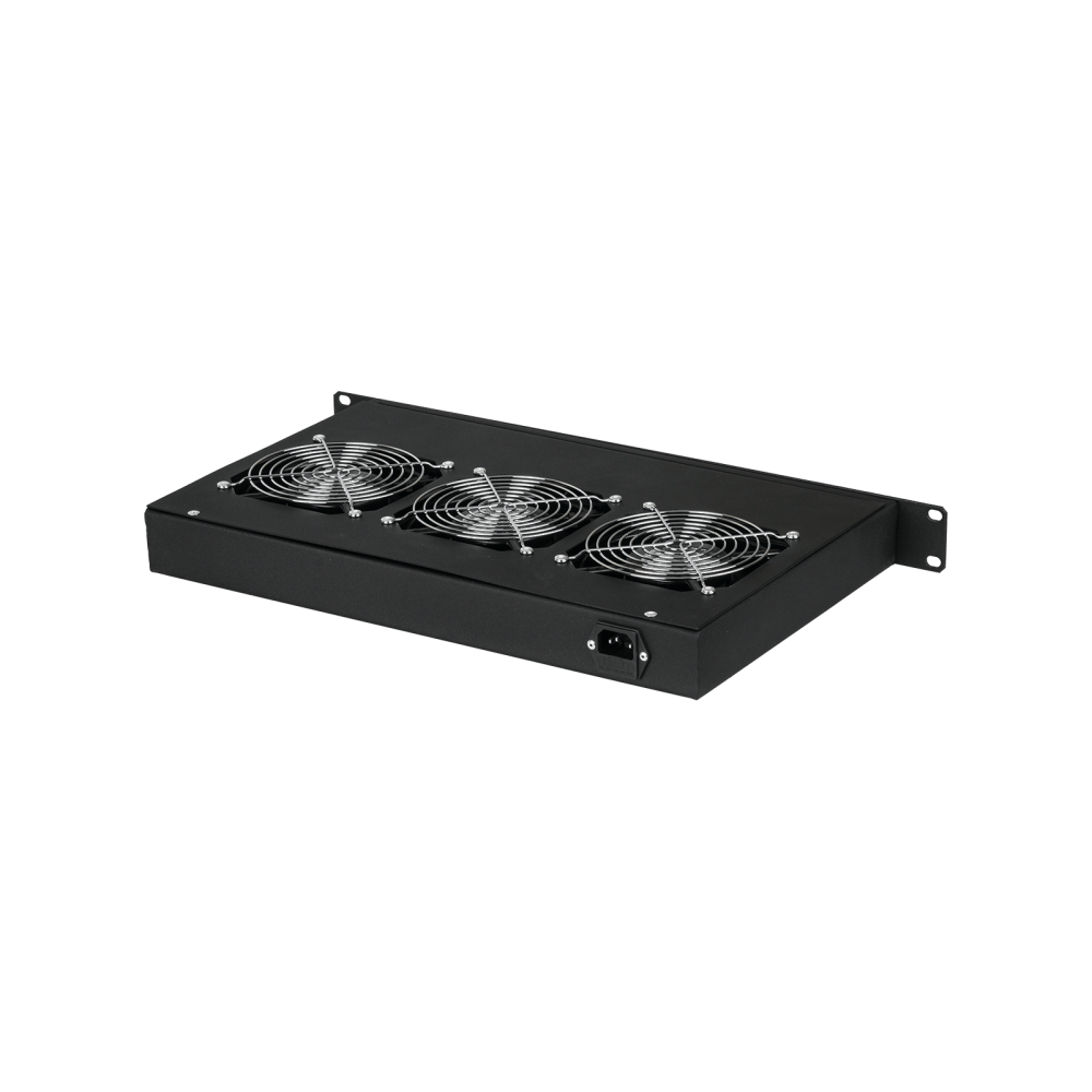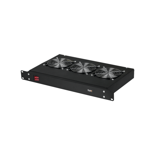 Вентиляторная полка предназначена для создания дополнительного потока воздуха в местах сосредоточения активного оборудования в телекоммуникационном шкафу. Вентиляторные полки можно устанавливать в напольные шкафы и стойки в соответствии с таблицей совместимости аксессуаров. Питание вентиляторной полки осуществляется с помощью подключения шнура питания к сети с напряжением 220 В, 50 Гц. Разъем питания на вентиляторном блоке типа IEC-60320 C14. Вентиляторная полка выполнена в 19” стандарте. Несущая конструкция вентиляторной полки выполнена из 2 мм стали. Вентиляторы закрыты решетками с обеих сторон. Включение/выключение полки осуществляются пользователем. Полка крепятся к направляющим с помощью комплекта крепежа. Антикоррозионное покрытие выполнено ударопрочной порошковой краской черного цвета.