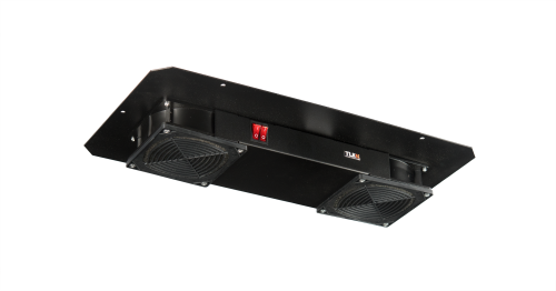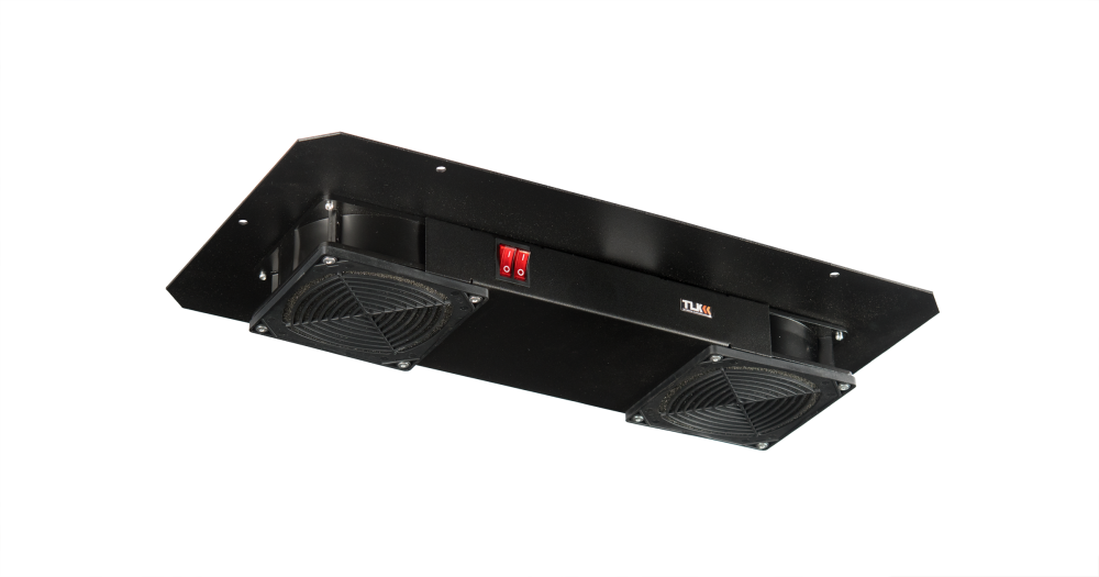 Вентиляторный блок предназначен для принудительного охлаждения активного оборудования, установленного в телекоммуникационном шкафу, путем отвода теплых воздушных масс из внутреннего объем шкафа. Блок устанавливается в специальную нишу потолочной панели настенного шкафа TLK серий TWM. Питание вентиляторного блока на 2 вентилятора осуществляется с помощью подключения шнура питания к сети с напряжением 220 В, 50 Гц. Разъем питания на вентиляторном блоке типа IEC-60320 C14. Вентиляторы закрыты c одной стороны защитными решетками, а с другой стороны защитными решетками с фильтрами для предотвращения попадания пыли во внутреннее пространство шкафа. Вентиляторный блок конструктивно выполнен с монтажным фланцем для удобства установки. Несущая конструкция вентиляторного блока выполнена из 2 мм стали. Антикоррозионное покрытие выполнено ударопрочной порошковой краской черного цвета.