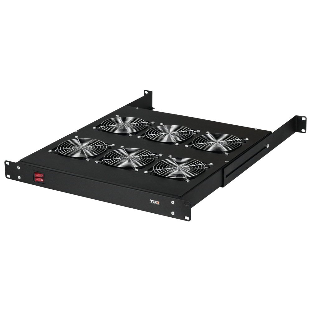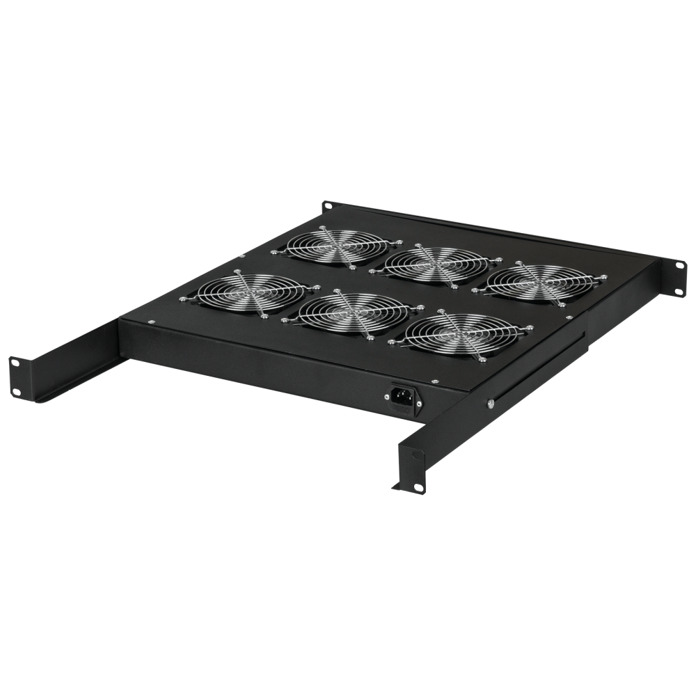 Вентиляторная полка предназначена для создания дополнительного потока воздуха в местах сосредоточения активного оборудования в телекоммуникационном шкафу. Вентиляторные полки можно устанавливать в напольные шкафы и стойки в соответствии с таблицей совместимости аксессуаров. Питание вентиляторной полки осуществляется с помощью подключения шнура питания к сети с напряжением 220 В, 50 Гц. Разъем питания на вентиляторном блоке типа IEC-60320 C14. Вентиляторная полка выполнена в 19” стандарте. Несущая конструкция вентиляторной полки выполнена из 2 мм стали. Вентиляторы закрыты решетками с обеих сторон. Включение/выключение полки осуществляются пользователем. Полка крепятся к направляющим с помощью комплекта крепежа. Крепеж не входит в комплект поставки. Антикоррозионное покрытие выполнено ударопрочной порошковой краской светло-серого цвета. Вентиляторная полка на 6 вентиляторов, глубиной 520 мм, снабжена дополнительными кронштейнами для крепления за заднюю часть. Кронштейны можно регулировать по вылету для подстройки под глубину направляющих шкафа.