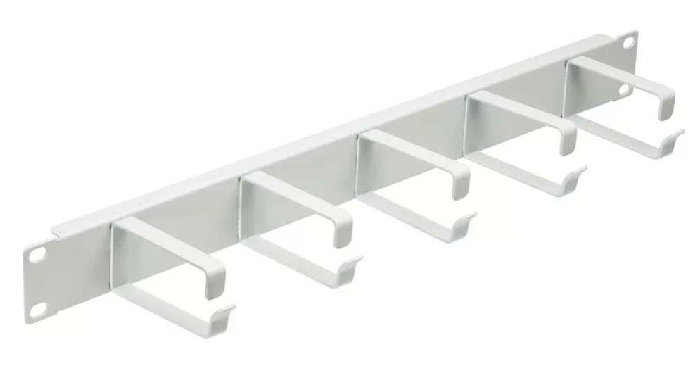 На лицевой стороне органайзера размещены 5 металлических колеца для фиксации кабеля.