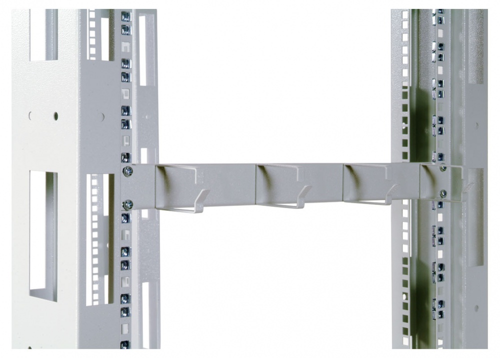 На лицевой стороне органайзера размещены 4 металлических колеца для фиксации кабеля.