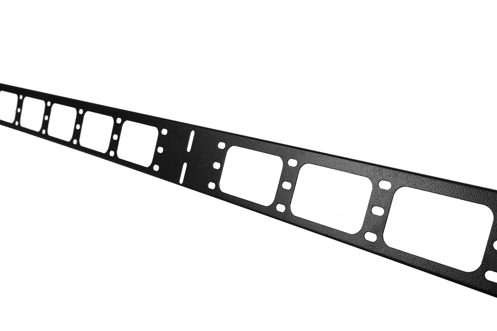 Серия ОКВ имеет развитую перфорацию для фиксации кабеля хомутами и стяжками. Используется в напольных телекоммуникационных шкафах различной высоты. Изготавливается двух модификаций – 75мм и 150мм шириной.