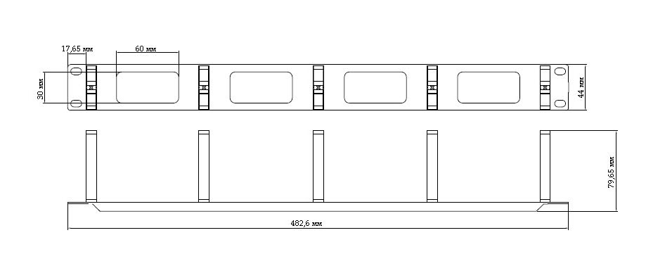 Кабельный организатор с пластиковыми кольцами 55x44 мм, 19", 1U