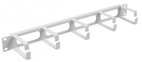 Горизонтальный кабельный органайзер 19", 1U, 5 колец глубиной 45 мм, металл, RAL 7035 предназначен для организация и фиксация патч-кордов и шнуров в горизонтальной плоскости.