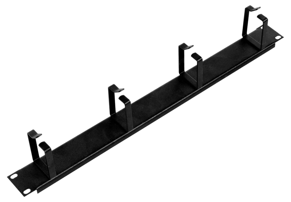 На лицевой стороне органайзера размещены 4 металлических колеца для фиксации кабеля.