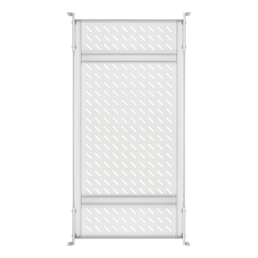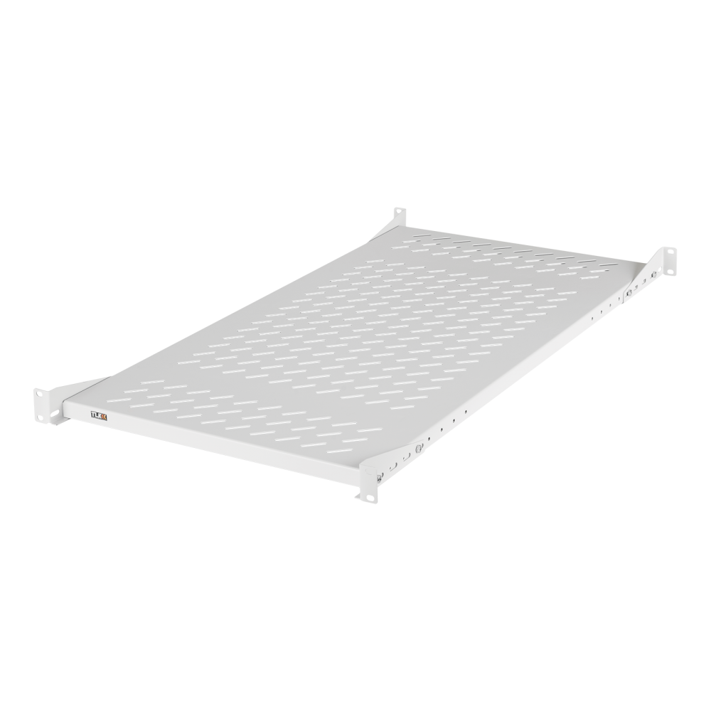 Стационарная полка увеличенной ширины предназначена для установки и поддержки тяжелого оборудования. Полка устанавливается в напольные шкафы серии TFA, TFM, TFI-R и настенные шкафы TWI-R, TWC-R в соответствии с разделом совместимости аксессуаров. Поверхность полки имеет перфорацию для лучшей вентиляции оборудования. Крепление осуществляется на двух парах 19" направляющих в четырех точках по боковым сторонам полки.