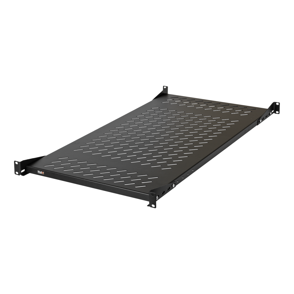 Стационарная полка увеличенной ширины предназначена для установки и поддержки тяжелого оборудования. Полка устанавливается в напольные шкафы серии TFA, TFM, TFI-R и настенные шкафы TWI-R, TWC-R в соответствии с разделом совместимости аксессуаров. Поверхность полки имеет перфорацию для лучшей вентиляции оборудования. Крепление осуществляется на двух парах 19" направляющих в четырех точках по боковым сторонам полки.