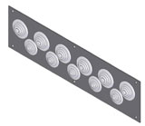 Панель кабельного ввода с вводами-сальниками выполнена из листовой стали 1,0 мм, имеет отверстия для кабеля с установленными вводами-сальниками диаметром 25 мм – 9 шт. и диаметром 20 мм – 9 шт. для шкафа шириной 800 мм.
