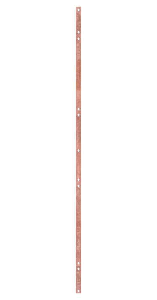 Шина заземления медная предназначена для вывода цепочки заземляющих контуров от всех токопроводящих частей шкафа, от установленного в шкафу оборудования и для подключения внешнего заземления. Шина имеет сечение 3х20 мм и выполнена из меди. Установка шины в шкаф осуществляется вертикально по боковым балкам шкафа. Крепление заземляющих проводников осуществляется с помощью клемм, установленных на шине.