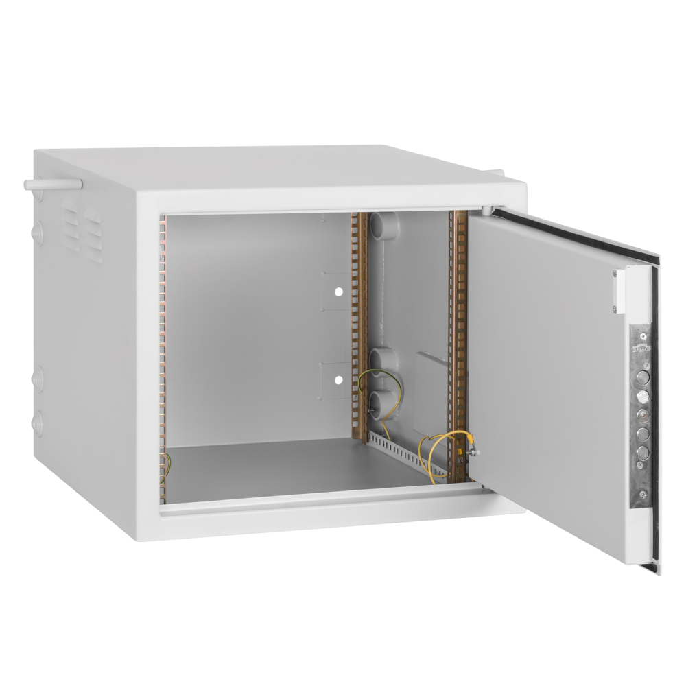 Настенные антивандальные шкафы серии Secure (TWS) — предназначен для защиты от несанкционированного доступа и кражи, установленного в них телекоммуникационного оборудования. Типичное использование шкафа - на чердаках, в подвалах и коммунальных зонах зданий. Особенностью настенных шкафов серии TWS является антивандальная конструкция, изготовленные из листовой стали 2 мм корпус и дверь , а так же замок повышенной надежности и секретности. Конструкция корпуса и двери — цельносварная, усиленная. Крепление шкафа к стене осуществляется через усиленные монтажные отверстия. Мощная, двухслойная дверь утоплена внутрь, что исключает возможность силового открытия при помощи фомки. Дверь снабжена 5-ригельным замком повышенной секретности. (В комплект входят 4 ключа). Шкаф снабжен 4-мя оцинкованными монтажными направляющими, регулируемыми по глубине, что позволяет устанавливать достаточно тяжелое и габаритное оборудование. На боковых стенках имеются по 4-е защищенных кабельных ввода диаметром 36 мм, закрытые резиновыми заглушкам. Жалюзийные вентиляционные отверстия, расположены на разных уровнях боковых стенок, обеспечивают хорошую вентиляцию устанавливаемого оборудования. С внутренней стороны шкафа вентиляционные отверстия имеют дополнительную защиту в виде стальных кожухов. На одной из боковых стенок внутри шкафа предусмотрено посадочное место под установку вентилятора размером 120х120х38 мм. Все токопроводящие части шкафа заземлены между собой. Для удобства переноски и монтажа предусмотрены легкосъемные ручки. При необходимости размещения шкафа на пол, в основании шкафа имеются отверстия для установки регулируемых по высоте опор. (В комплект поставки не входят). Антикоррозионное покрытие выполнено ударопрочной порошковой краской. Шкаф выполнен в системе несущих конструкций серии 482,6 мм ГОСТ 28601-90 (19-дюймовому стандарту IEC 297). Максимальная допустимая распределенная нагрузка на шкаф серии TWP составляет 150 кг. Степень защиты шкафа составляет IP 31. Шкаф поставляется в собранном виде.