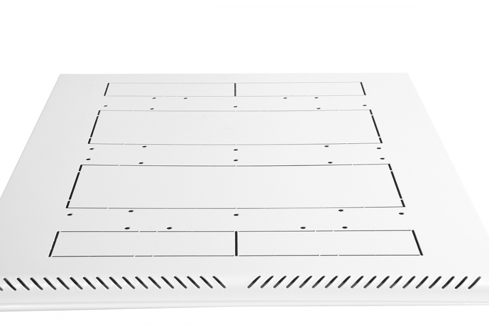 В шкафах предусмотрены места для установки вентиляторных модулей. Для установки модуля демонтируется заглушка в крыше либо основании шкафа, и модуль надежно фиксируется винтами. В основание или крышу ШТР-П глубиной 600-800 мм возможна установка двух вентиляторных модулей, в шкафы глубиной 1000 мм - трех модулей. Крыша имеет дополнительную перфорацию и заглушенные отверстия под кабельные вводы - 55х420 мм, в них предусмотрена установка комплекта щеточного ввода либо двух комплектов. Основание шкафа имеет такие же заглушенные отверстия под кабельные вводы - 55х420 мм, в которые устанавливается комплекта щеточного ввода либо двух комплектов щеточного ввода, а на боковых поверхностях основания (кроме фасада) - три кабельных ввода размером 250х62 мм (установка щеточного ввода не предусмотрена). В основание шкафа установлены винтовых опор (ножек) позволяющих компенсировать неровности пола. Возможна установка поворотных роликов различной нагрузочной способности (в комплект поставки не входят).