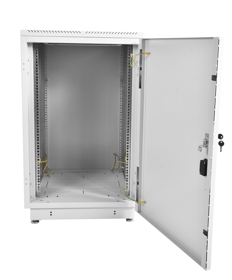 Стандартно шкафы комплектуются задней металлической стенкой, и тремя видами дверей: цельнометаллической, с тонированным ударопрочным стеклом, и дверью с перфорацией. Возможна комплектация двумя дверьми, исключающая заднюю стенку. В шкафах 18-38U, дверь фиксируется усиленным точечным замком, 42-47U ригельным. Двери имеют как правую, так и левую навеску.