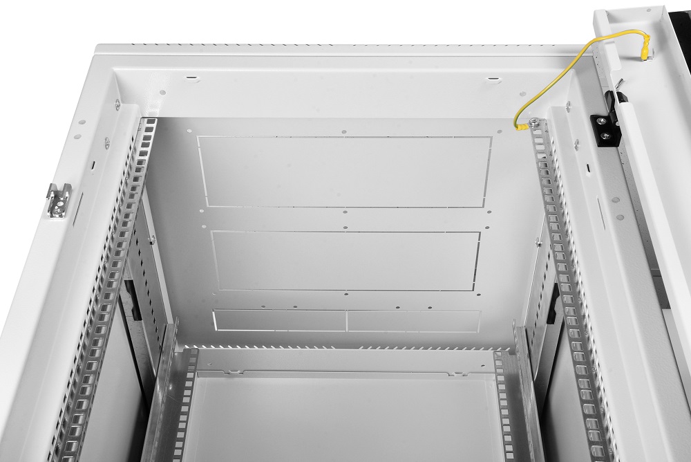 Стандартно шкафы комплектуются задней металлической стенкой, и тремя видами дверей: цельнометаллической, с тонированным ударопрочным стеклом, и дверью с перфорацией. Возможна комплектация двумя дверьми, исключающая заднюю стенку. В шкафах 18-38U, дверь фиксируется усиленным точечным замком, 42-47U ригельным. Двери имеют как правую, так и левую навеску.