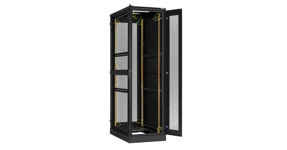 В базовой комплектации шкафа идут 4 монтажных 19” профиля, регулируемых по глубине. Для удобства монтажа и обслуживания установленного в шкафу оборудования конструкцией шкафа предусмотрен доступ с четырех сторон, через переднюю и заднюю дверь, боковые легкосъемные стенки. Боковые стенки шкафа утоплены внутрь каркаса, запираются на защелки и замки с ключами. Передняя и задняя дверь имеет ручку с замком. Передняя/задняя дверь может быть цельнометаллической, перфорированной или со вставкой из ударопрочного, тонированного в массе стекла. . Имеется возможность установить левое/правое открытие двери на этапе сборки, либо же перенавесить двери после сборки шкафа. Угол открытия дверей — 180 градусов. Боковые стенки доступны в сплошном или перфорированном исполнении, а также в цельном либо в двухуровневом исполнении. Для обеспечения эффективного теплообмена и поддержания необходимого температурного режима, в крышу и основание шкафа могут быть установлены вентиляторные блоки. Наличие перфорации также повышает эффективность теплообмена. Ввод кабелей осуществляется через крышу или основание шкафа. Все части шкафа соединены в единый контур проводами заземления. Шкафы могут быть состыкованы между собой с помощью комплекта для соединения. Возможна установка шкафа на регулируемые опоры и ролики одновременно.